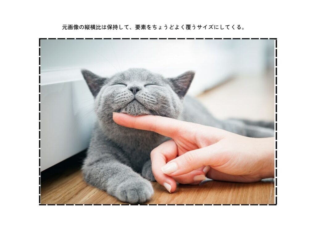 背景画像を要素全体に広げ、縦横比を保ちながら要素を完全に覆います。